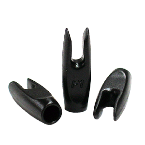 F PIN-NOCKS are designed for use on most of the pins available today and have two different grooves size : F1 a lit smaller than .88 and F2, a lit smaller than .98.